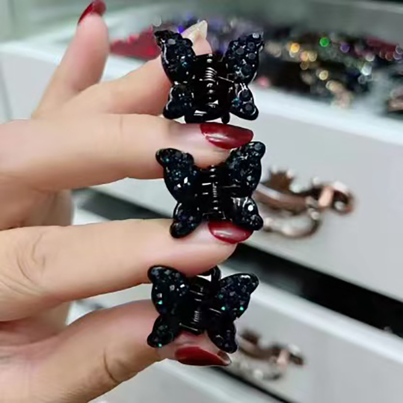 蝶の形をした小さなヘアクリップ、上品で華やかな人気商品、新作ヘアクリップ、小型で高級感のある、全面にラインストーンが施された、精巧で立体的なデザイン