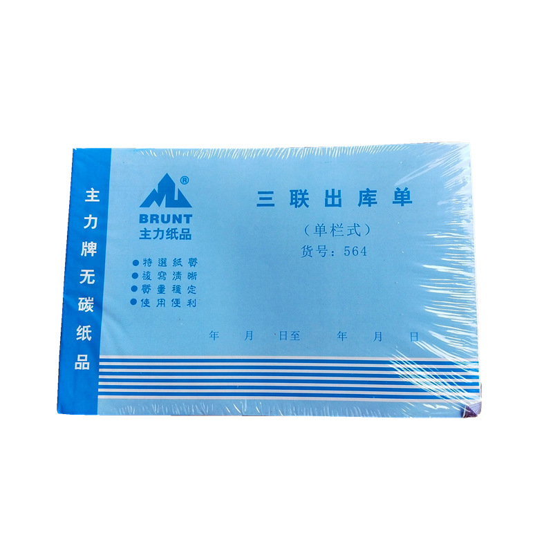 主力32開青三連横式単欄入庫票出庫票白紙パッド付き無炭素紙伝票