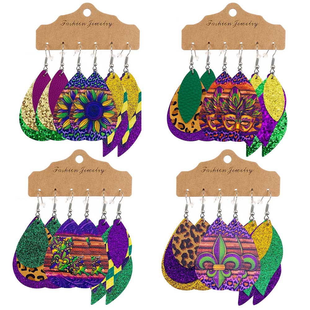 新型カーニバル革イヤリング多層軽量イヤリングセット欧米クロスボーダー人気祭りアクセサリー卸売り