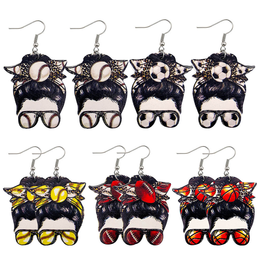 新しいサッカーのバスケットボールのスポーツのイヤリングの漫画の少女の顔のペンダントのイヤリングのワールドカップのイヤリングの欧米の装飾品