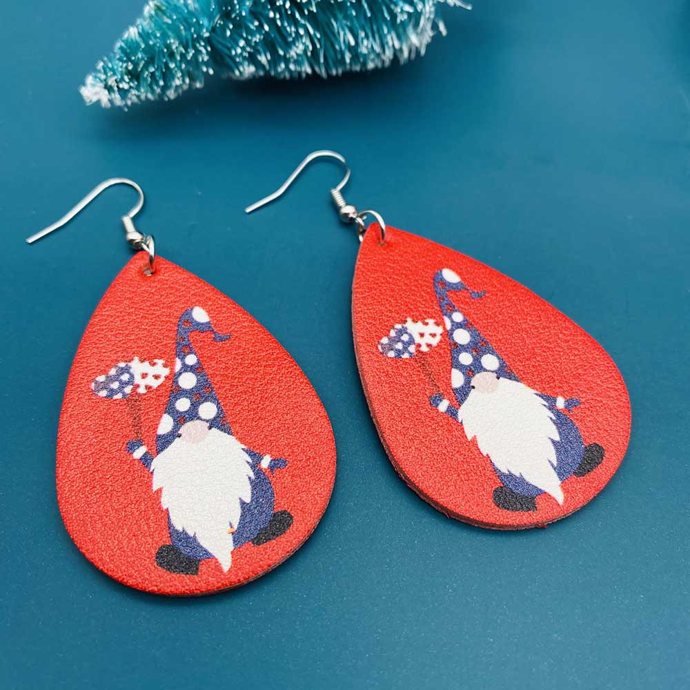 新しいクリスマスのイヤリングの小人の小さい人の赤いプリントの皮革のイヤリングの欧米の越境のクリスマスの耳飾り