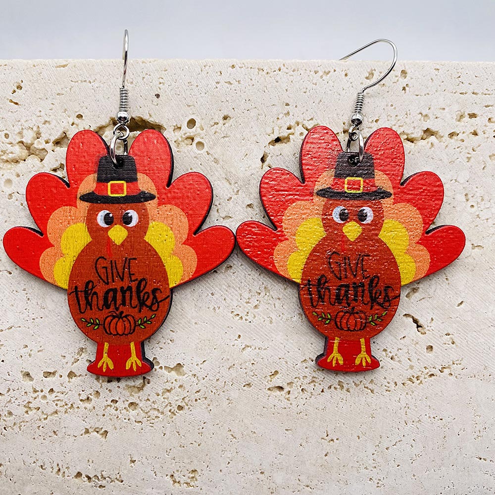 新しい感謝祭の木製イヤリング七面鳥プリント木イヤリング欧米アマゾンの人気木製イヤリング