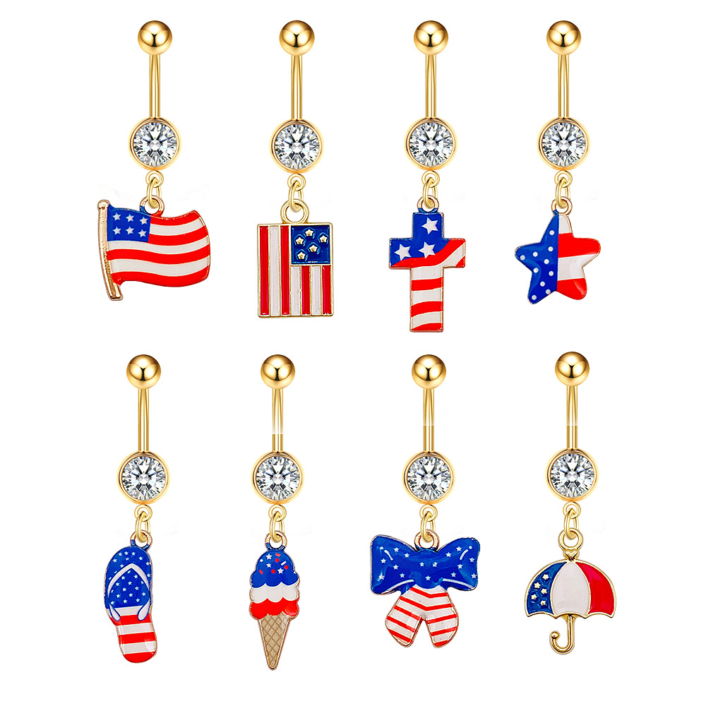 新型ステンレス独立日へそ環アメリカ国旗五角星合金ペンダントへそ釘人体穿刺
