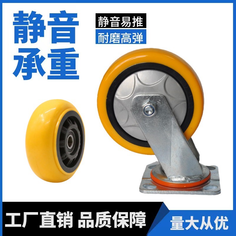 重さ4インチ5インチオレンジ黄双軸受積載輪6インチ8インチ静音耐摩耗ポリウレタン方向性自在キャスター