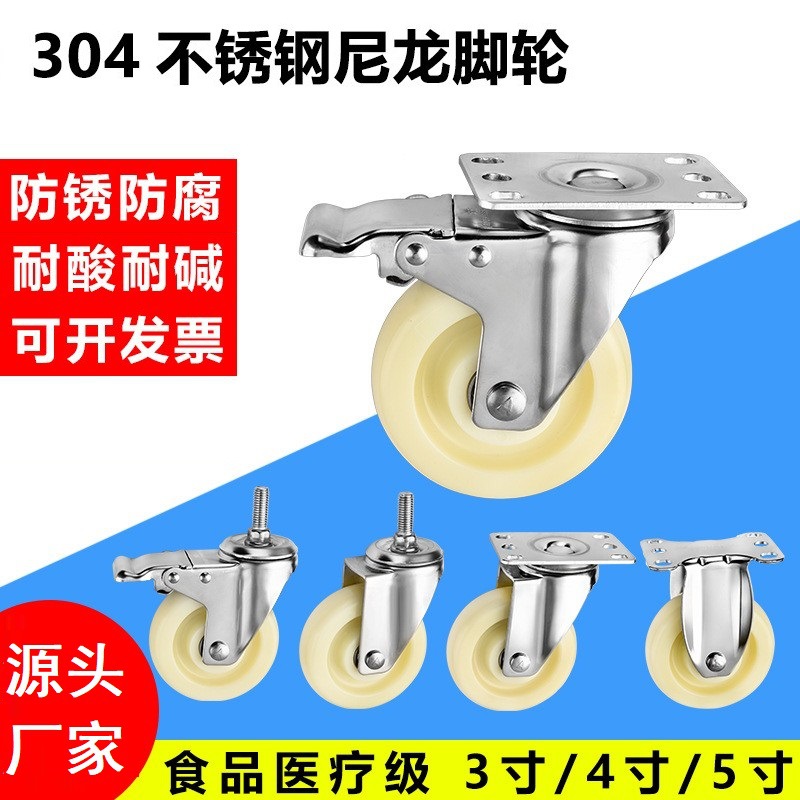 重型304ステンレスナイロンキャスター防水防錆自在車輪4568インチ食品工場専用キャスター