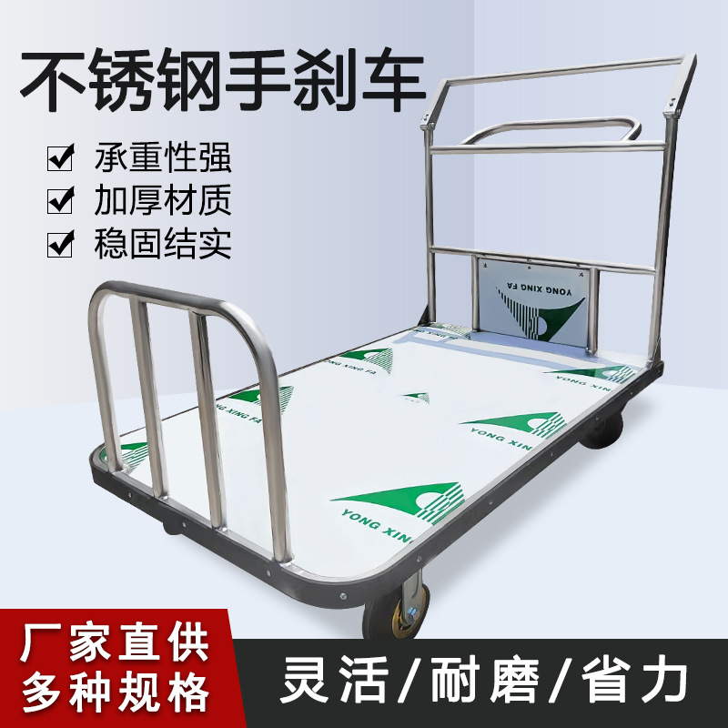 高速鉄道駅用ステンレス製ハンドブレーキカート、空港用サイレント輸送ブレーキフラットカート、ハンドブレーキカート付き、直接供給