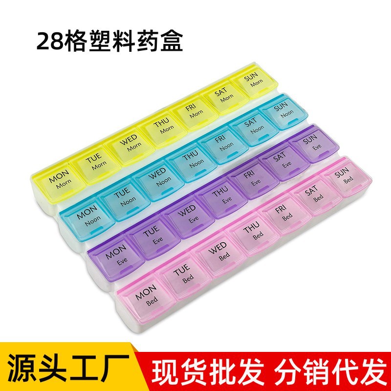 メーカーは1688を提供して、長方形の虹の薬箱を週に7日間28個のカラープラスチックの薬箱を推薦します。