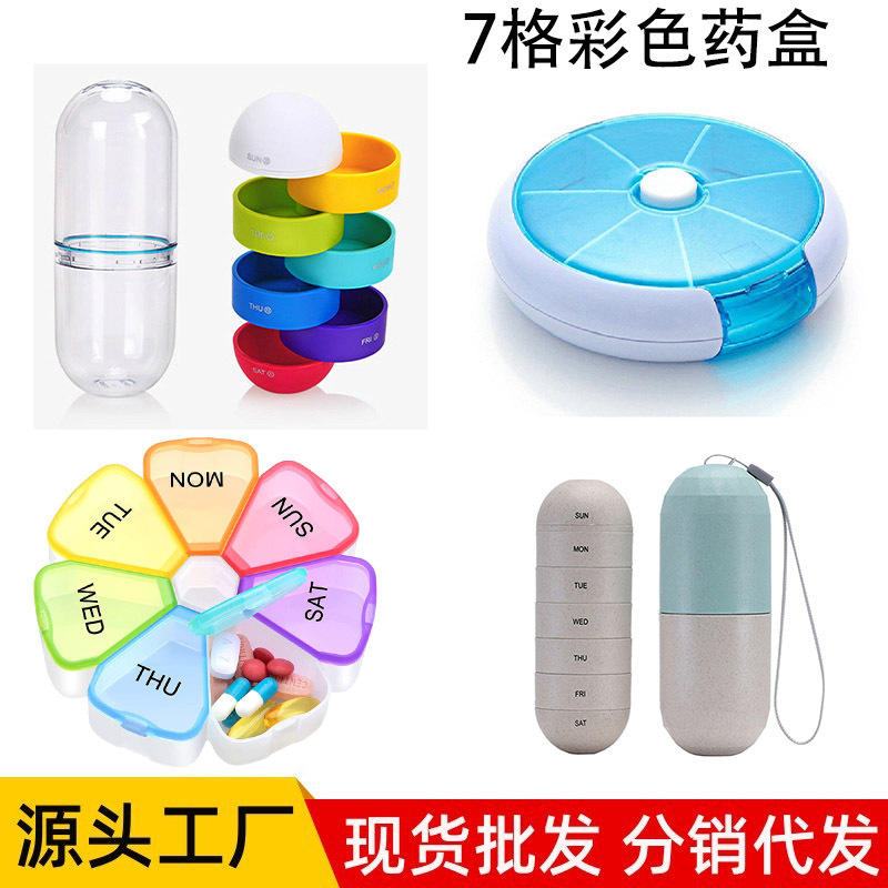 外国貿易 1 週間 7 グリッド食品グレードのプラスチック薬箱カラフルな弾性蓋便利な防水密封されたコンパートメント薬収納ボックス