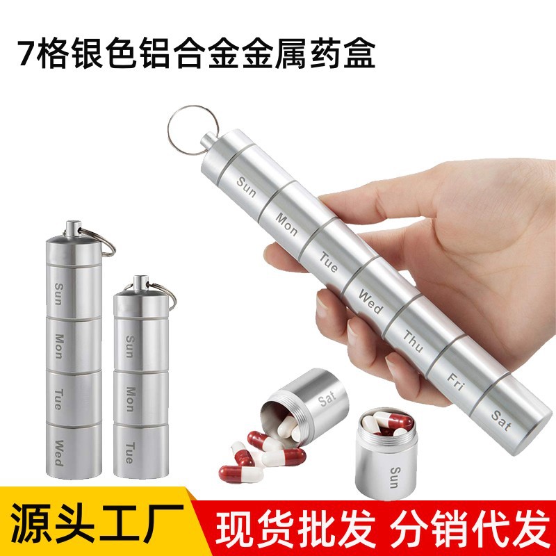 外国貿易の虹のキーホルダーの小型の便利な薬の箱の瓶の毎週のアルミニウム合金の小さい薬の箱の防水の金属の薬の箱