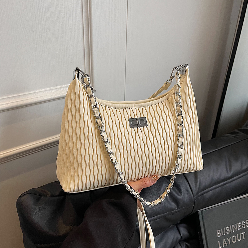 高級感のある女性バッグ2025小衆の新しいファッション的な質感のチェーンのしわの包みの肩の斜め掛けの脇の下の包みのメーカー