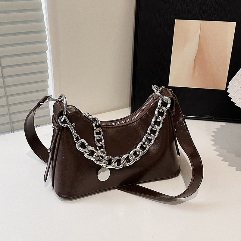 フレンチニッチレトロ脇の下バッグ女性のための 2025 新しいハイエンドチェーンバゲットバッグシングルショルダークロスボディバッグ