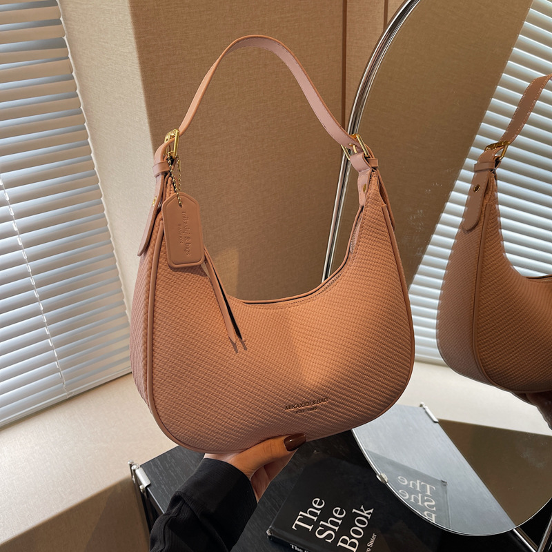 クロスボーダー高級感三日月バッグ女性2025新型ファッション通勤腋の下バッグ夏流行百合シングルバッグ