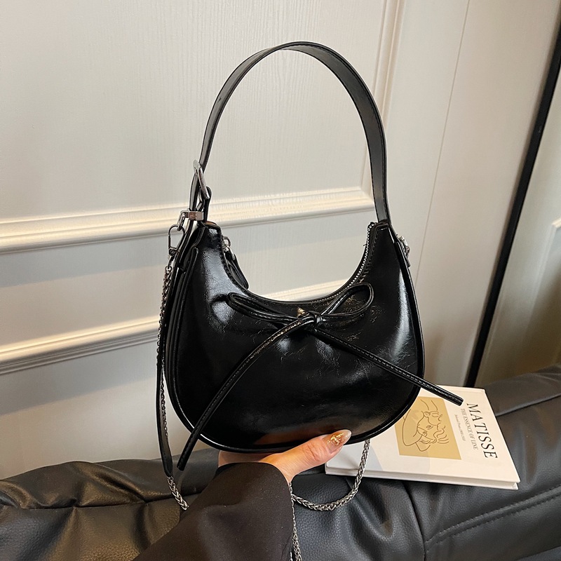 蝶結びの簡単な通勤新月の包み2025新型のファッションの質感の手提げの肩の斜めのショルダーバッグの三日月の包み