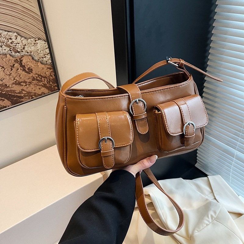 ファッショントレンドの特包女性2024冬の新型シンプルな大容量シングルバッグ高級感腋の下バッグ