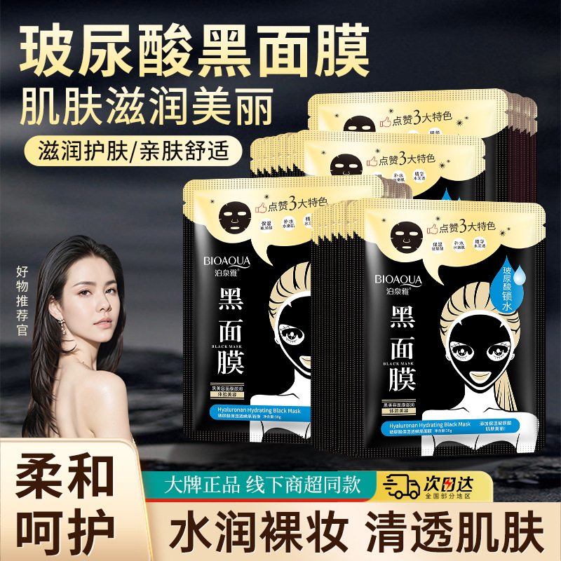 泊泉雅ヒアルロン酸黒マスク保湿補水マスク黒頭収縮毛穴一枚入