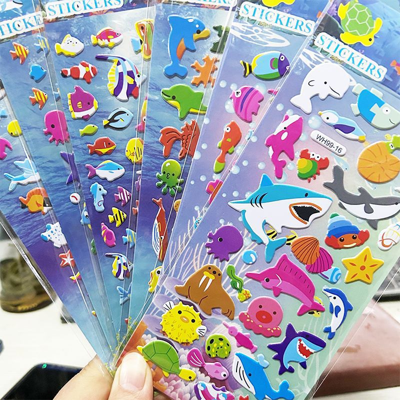 小さな魚ステッカー漫画早期教育ステッカー 3D 立体非毒性ステッカー幼児海洋魚ステッカーサメイルカステッカー