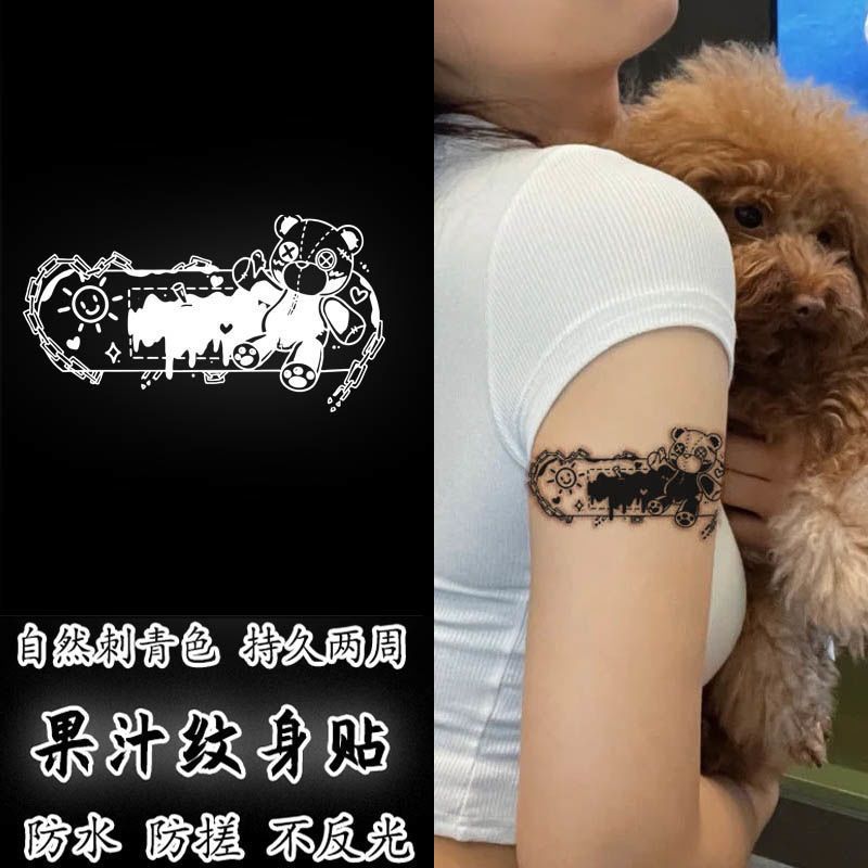 暴力的なクマのスタンプパーソナライズされたクールな花の腕と脚のジュースタトゥーステッカー半永久的な長期的な防水タトゥーカラー