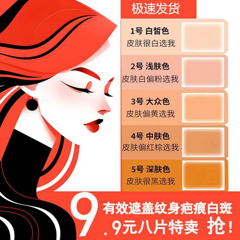タトゥーをカバーする目に見えない強力な肌色のステッカー、傷跡やあざをカバーするプロ仕様のアーティファクト、長持ちする防水性と通気性のある偽皮のコンシーラー