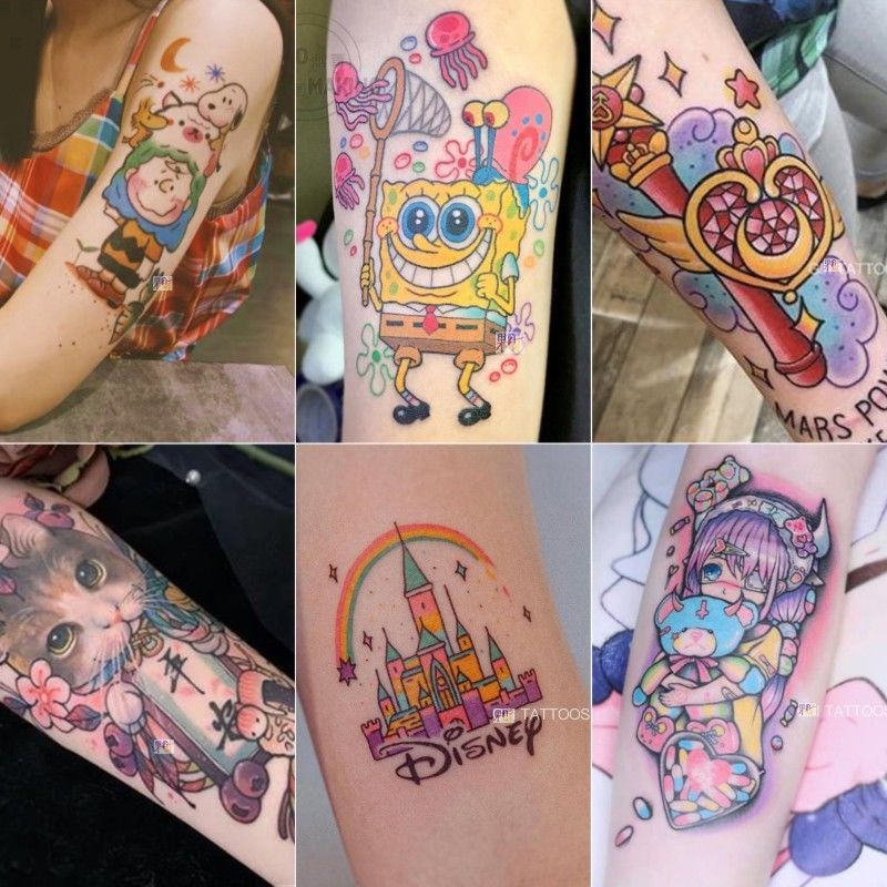 漫画タトゥーデカールアームガールかわいい漫画防水長期的な魔法の杖スポンジボブアニメ