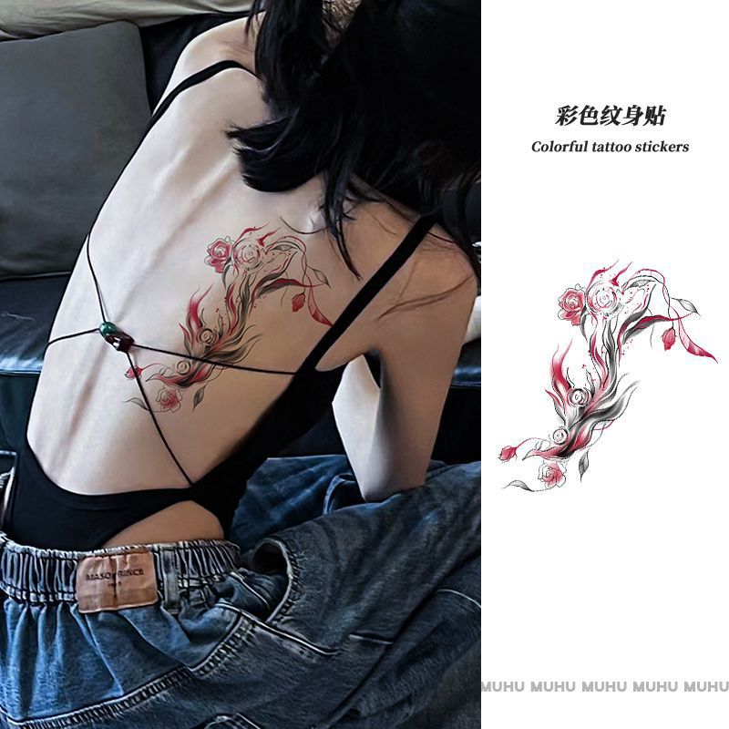 中国風フェニックスローズイン新しいカラフルな純粋な欲望クールホットガールタトゥーステッカー防水長期的な傷跡カバーアーム