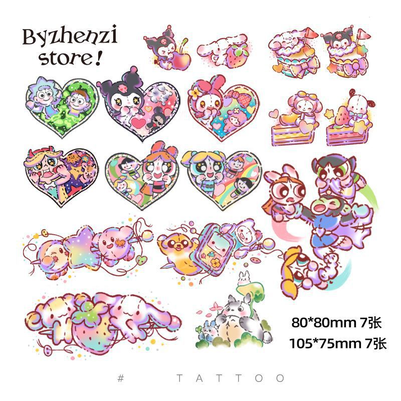 長持ちするカラータトゥーステッカーセットサンリオスイート漫画防水ガールハート長持ちするタトゥーステッカー