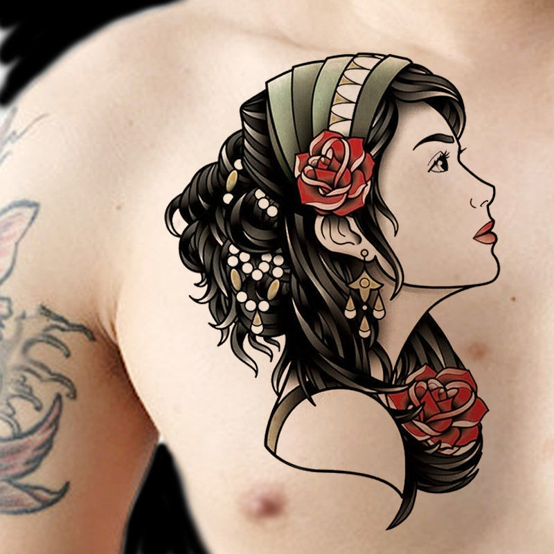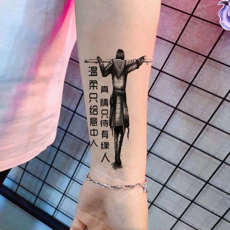 非毒性ハーフアームタトゥーステッカー防水長持ち男性と女性のタトゥーデカールアームフラワーレッグマジック仏関公オオカミヘッドイーグルタトゥー