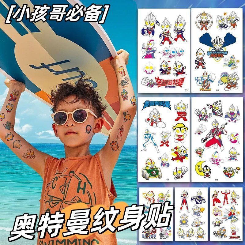 タトゥーウルトラマンスーパーマン凹凸漫画子供用カラーボーイ防水かわいいウォーターステッカー長期的な透かし