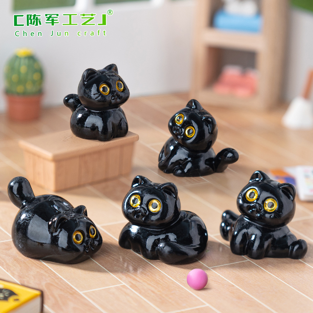 微景観創意かわいい黒猫公仔萌え粒人形屋diy装飾品部品デスクトップ車載小置物