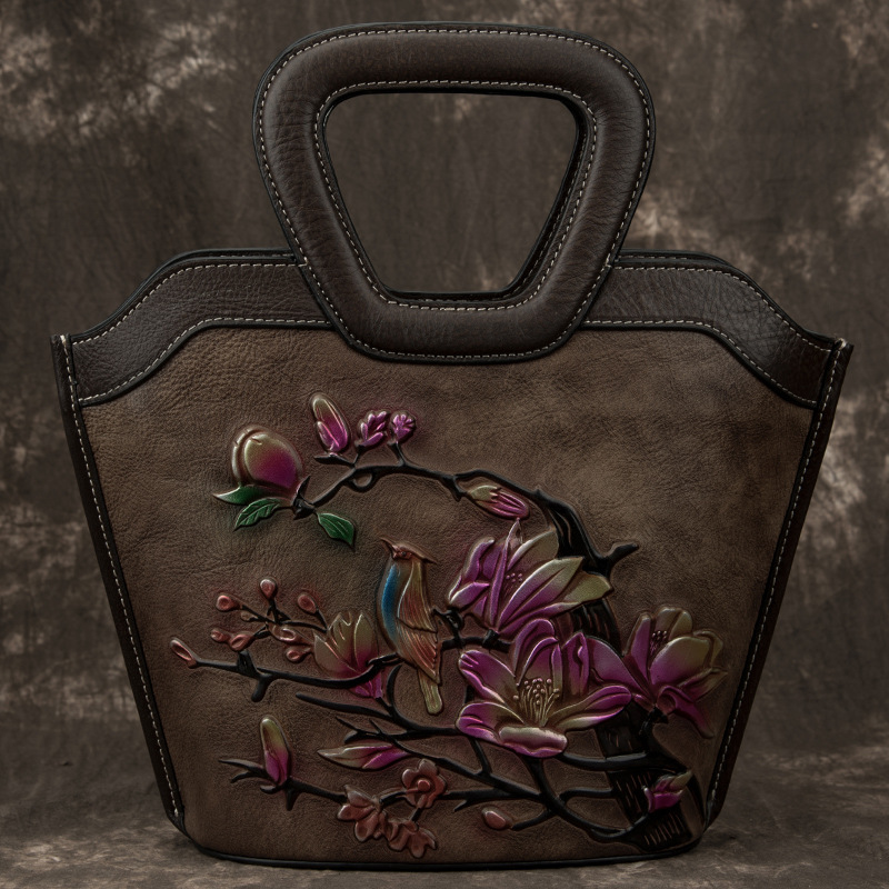 レディースバッグ欧米ファッションハンドバッグバッグ大容量レトロ本革レディースバッグ百合シングルショルダーバッグ