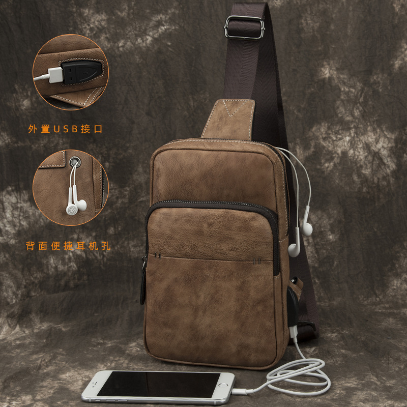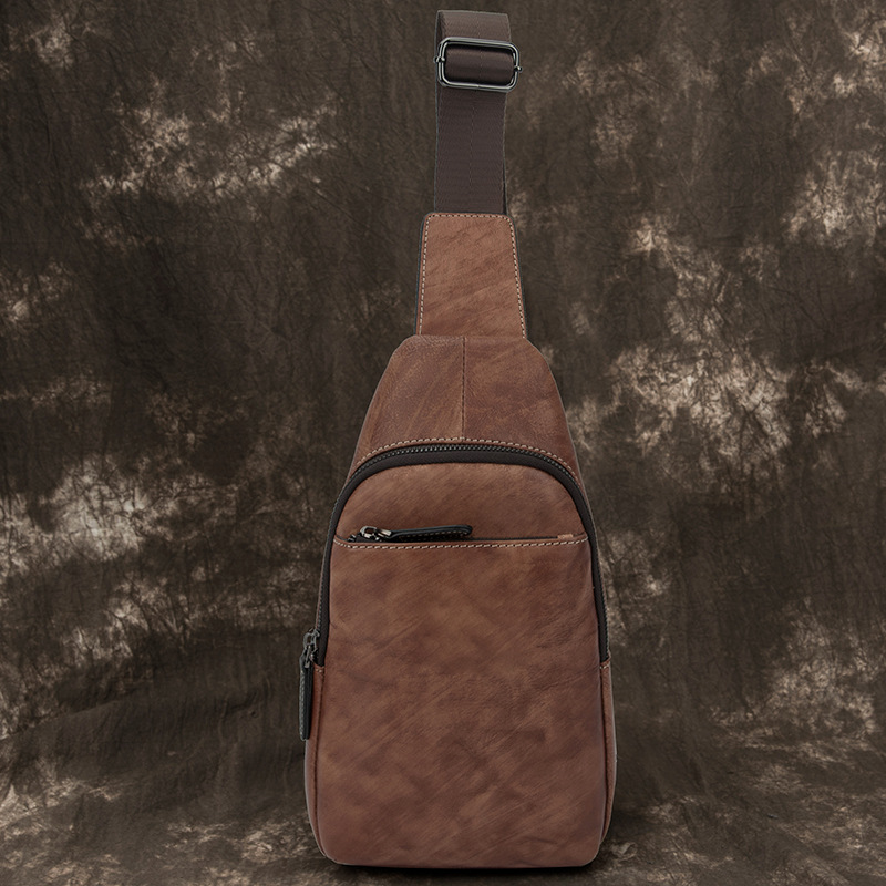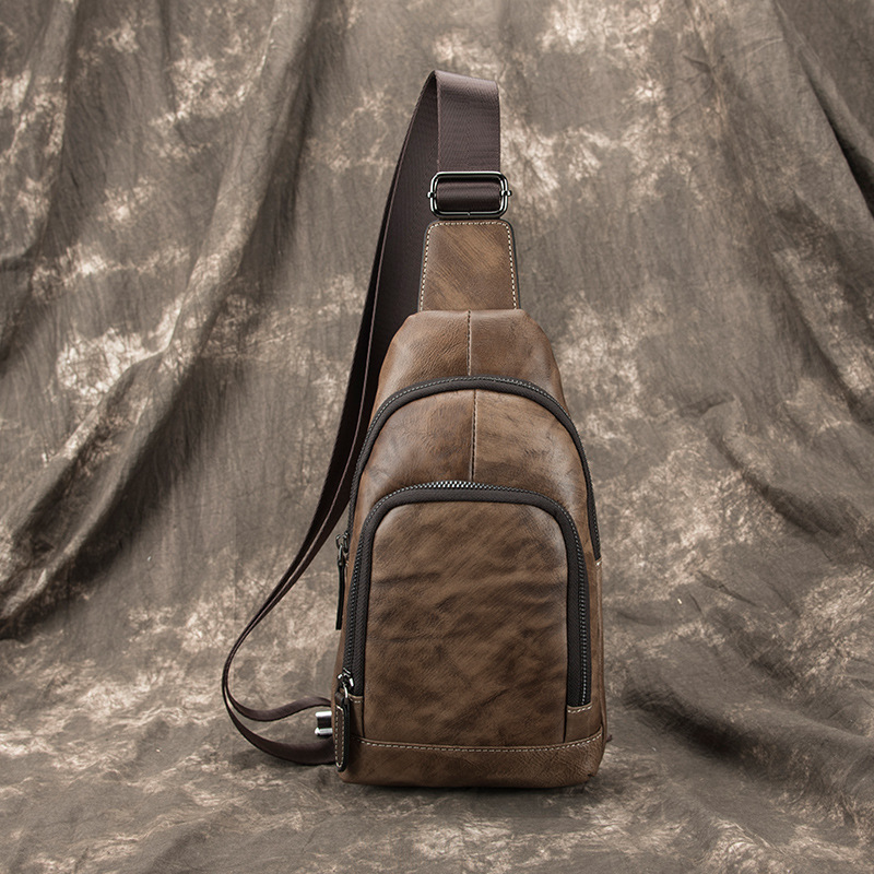 男性用バッグカジュアル男性用バッグ斜め掛けショルダーバッグシングル肩レトロチェストバッグ男性用本革ソフトレザー牛革