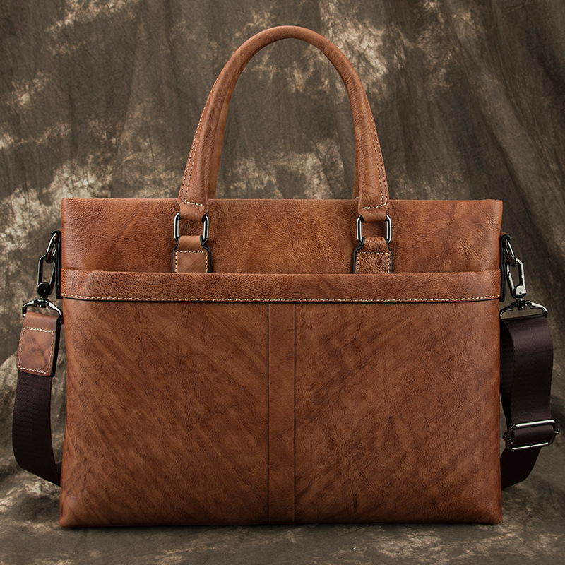 新しい男性用バッグ牛革ビジネスレトロなハンドバッグ本革横型シングル肩大パソコンバッグ欧米のブリーフケース