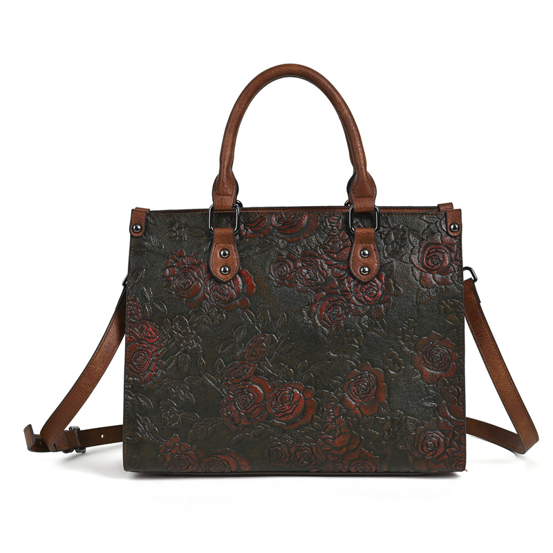 2024新品レディースエンボス本革レディース女性カバンレトロレディースハンドバッグカジュアル女性用中年バッグカバン