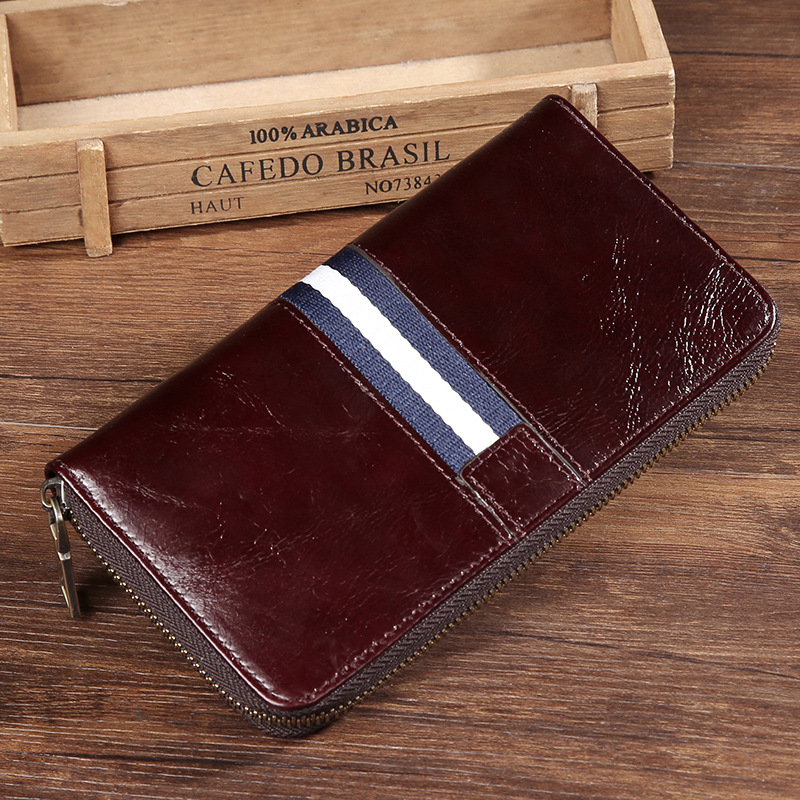 新型男性牛革財布レトロ大容量カジュアル本革財布長型ファスナーメーカー卸売り