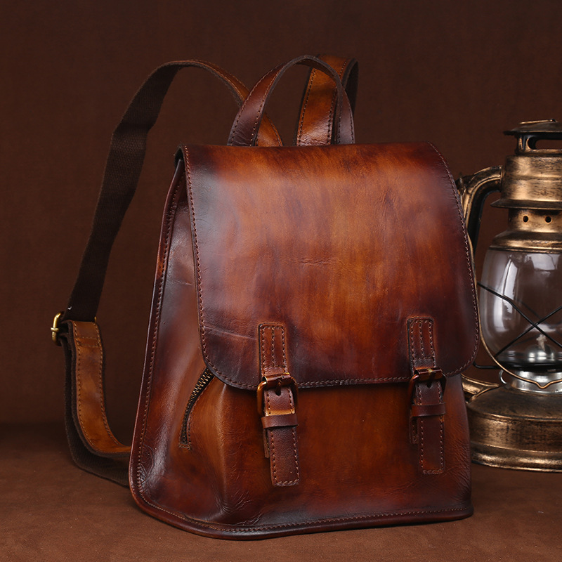 新型レトロカジュアルリュックサック男女カジュアルリュックサックのトップ層牛革女性カバン旅行カバン手作り色塗りリュックサック