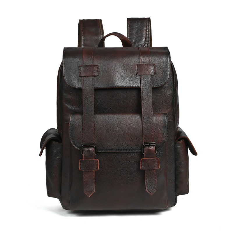 手磨き牛革メンズカジュアルバックパックレトロ本革バックパックファッション大容量トラベルバッグコンピュータバッグ