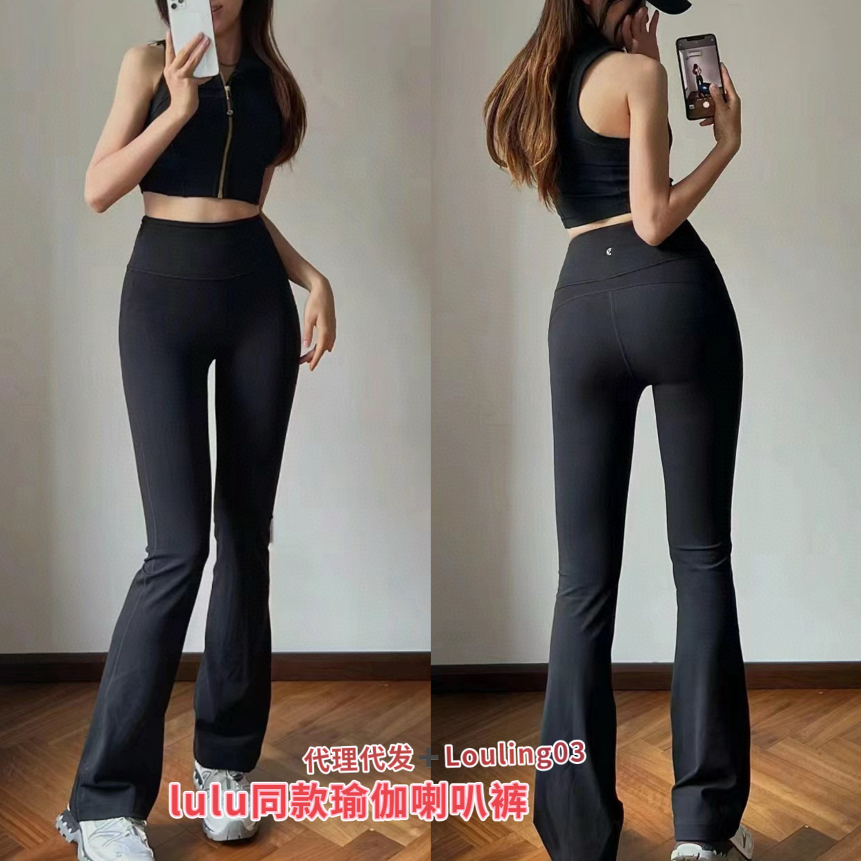 ルルと同じスタイルのマイクロフレアパンツ、ヨガシャークパンツ、女性用春秋ハイウエストヒップアップ痩身スポーツカジュアルボトムスフレアパンツ
