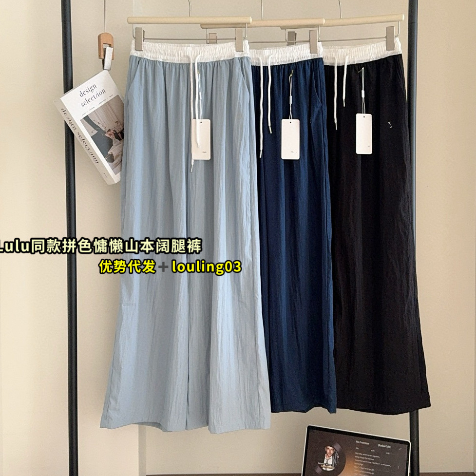 ルルと同じスタイルのカラーブロックワイドレッグパンツレディース夏ニッチビッグレッグレイジースタイルフロアレングスカジュアルストレートパンツ山本パンツ