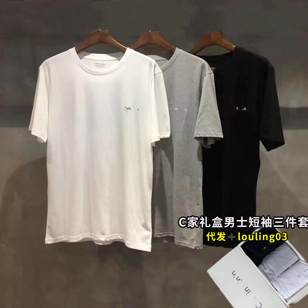 C ギフトボックス Ke's メンズ半袖スリーピースセット黒、白、グレー無地ラウンドネックルーズ半袖 Tシャツ夏の万能トップ