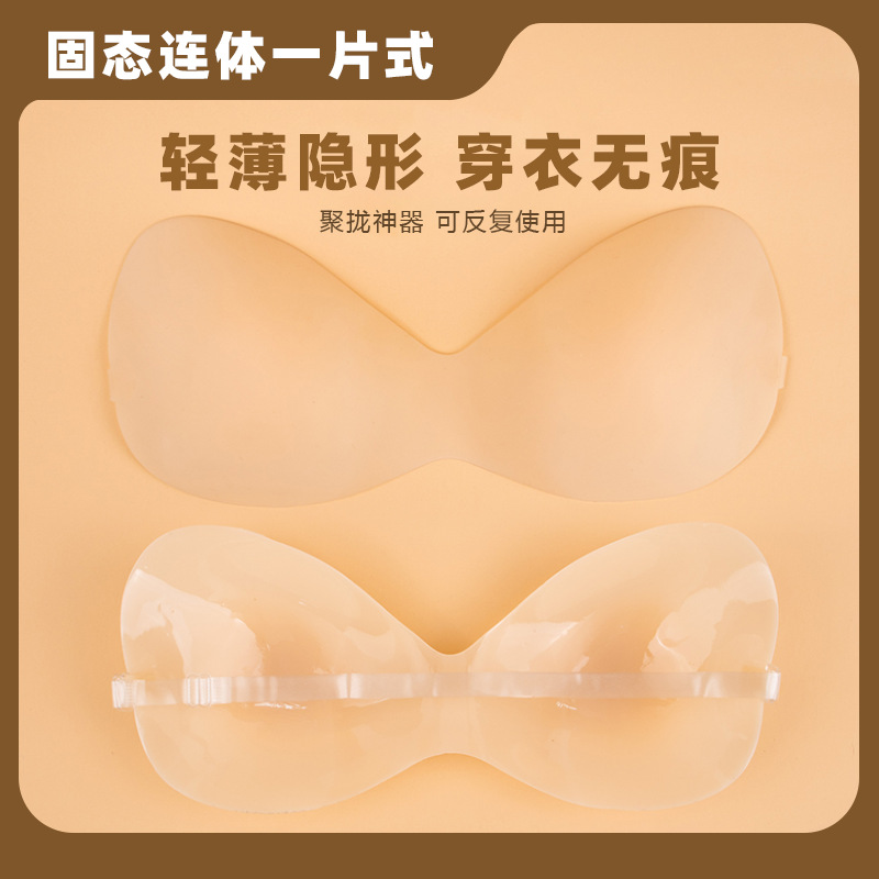 一枚式の固体シリカゲルの胸に肩ベルトのない超薄型のブラジャーを貼ります。