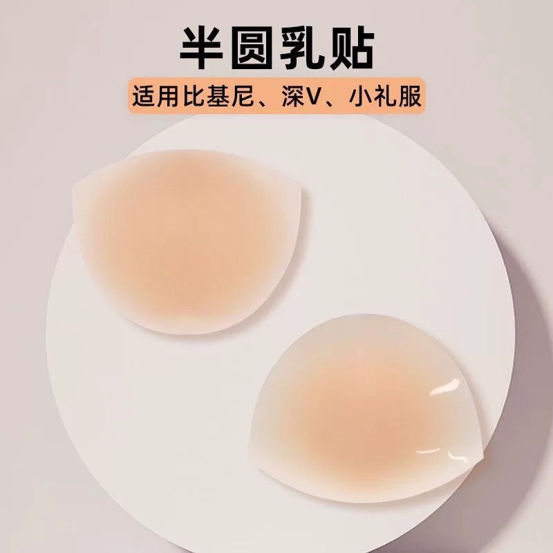 ウェディングドレス用の半円形の固体シリコーン乳首ステッカー、膨らみ防止乳輪ステッカー、女性用の痕跡のない目に見えない深いV字型のローネック胸ステッカー