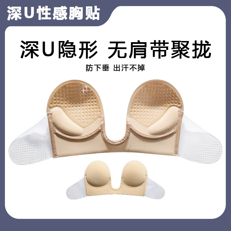 ワンピースディープUセクシーシームレス胸パッチ、ストラップレス、ノンワイヤー、サイドノンスリップパッチ、プッシュアップインビジブルブラ