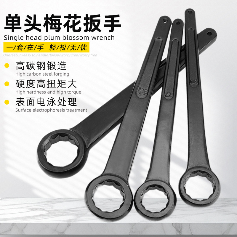 梅花型インパクトレンチ、ストレートハンドル、シングルエンド、複数サイズ、高炭素鋼鍛造、国際規格、卸売