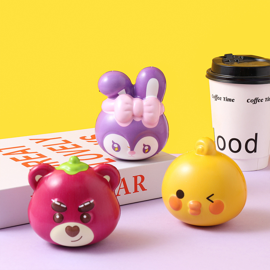 おもちゃのつまみの子供の卸売りPUのスローバックのイチゴの熊の小さい黄色のニワトリの紫色のウサギの星の黛露の街角の露店
