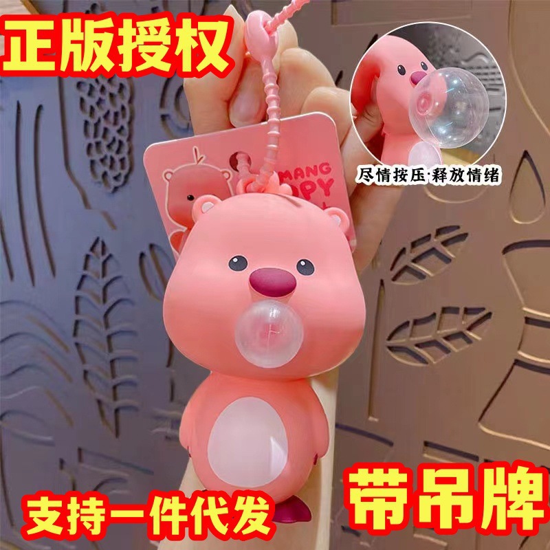新しいルビLOOPYは泡を吐くビーバーのキーホルダーを解凍して、ビーバーの車のキーホルダーをつまんで掛けます。