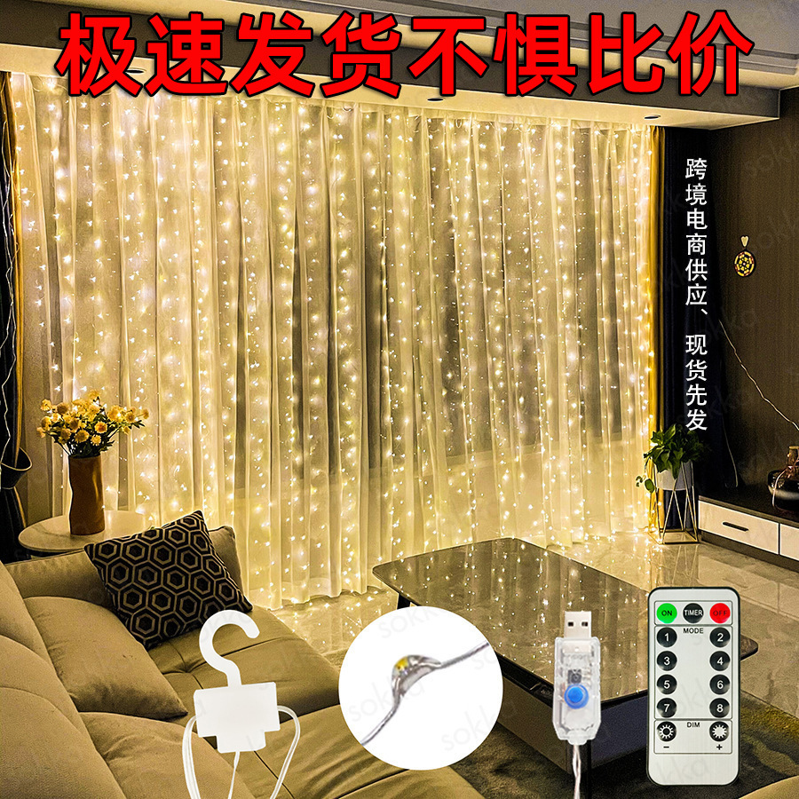1688Amazon クロスボーダー銅線カーテンライトストリングホリデークリスマス装飾 USB リモコン 8 機能 LED 銅線カーテンライト