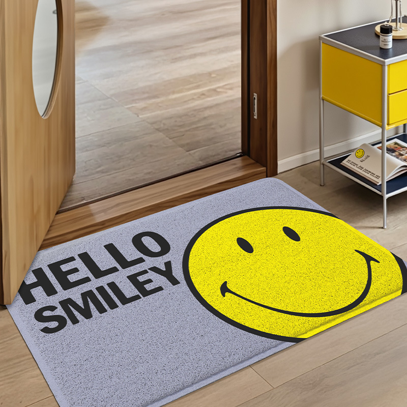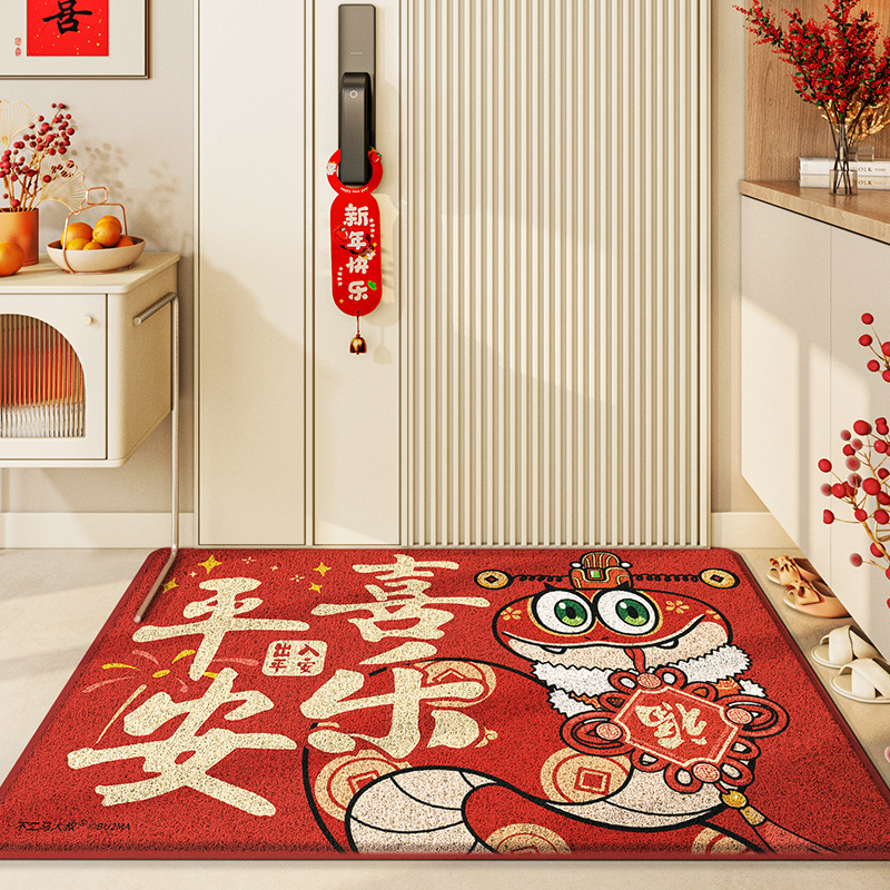 大江のお祝いのほほえみの赤い糸の輪の地面は戸口の汚れに耐える玄関の入り口の除塵pvc滑り止めの足のマットに入ります。