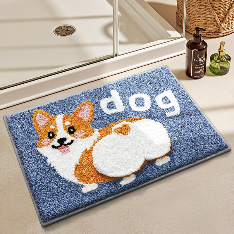 ライトカスタマイズされたジャカード植毛フロアマット浴室強力な吸水性ノンスリップマット植毛ジャカード漫画動物ホームフットマット