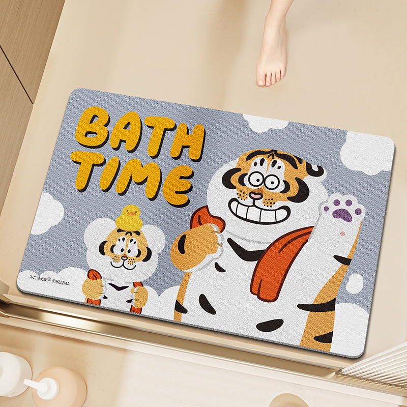 大江IP共同ブランドの太った虎の玄関マット、汚れに強いカーニベル素材の漫画風ホーム玄関マット、滑り止め付き