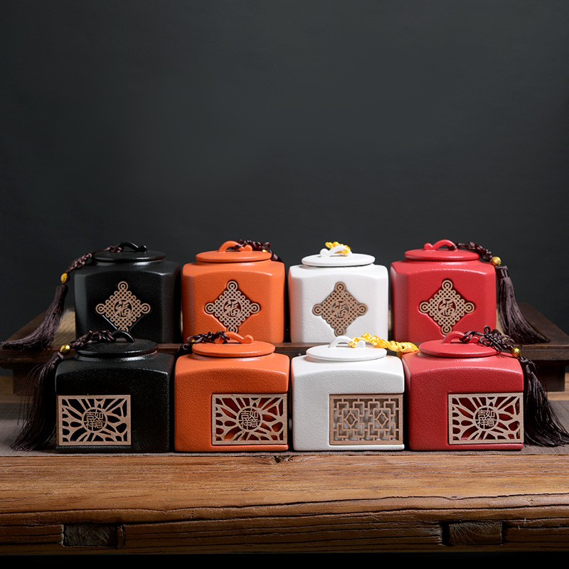 メーカー卸売り中国式木片透かし彫り陶磁器茶葉缶貯蔵タンクプーアル茶紅茶鉄観音包装箱