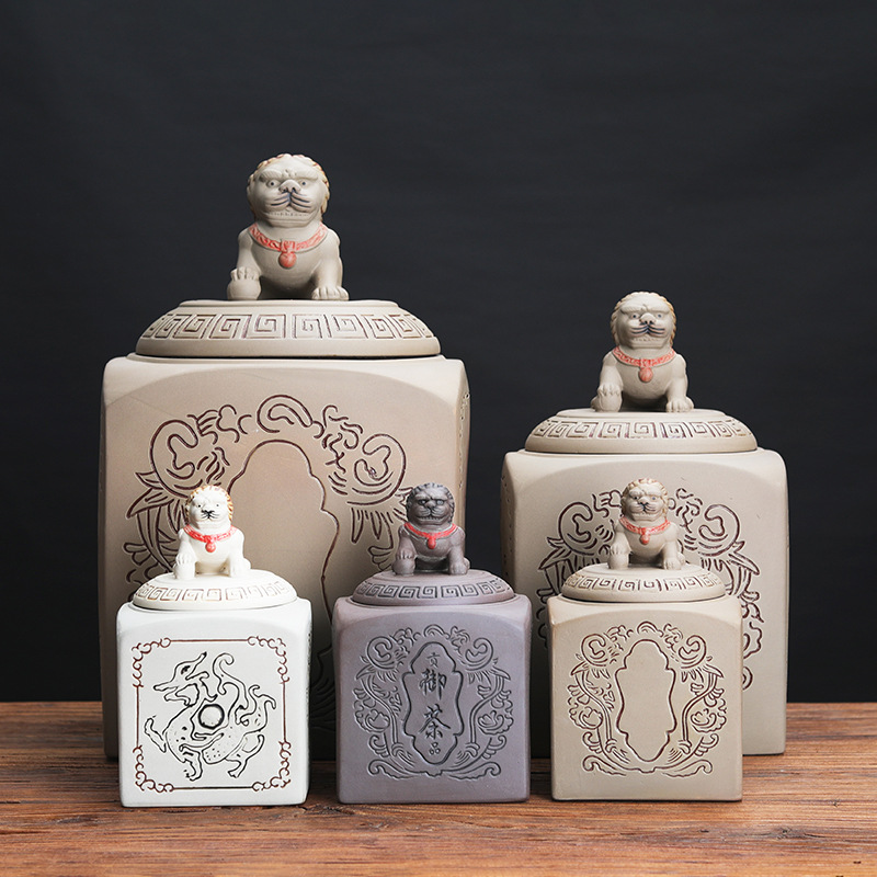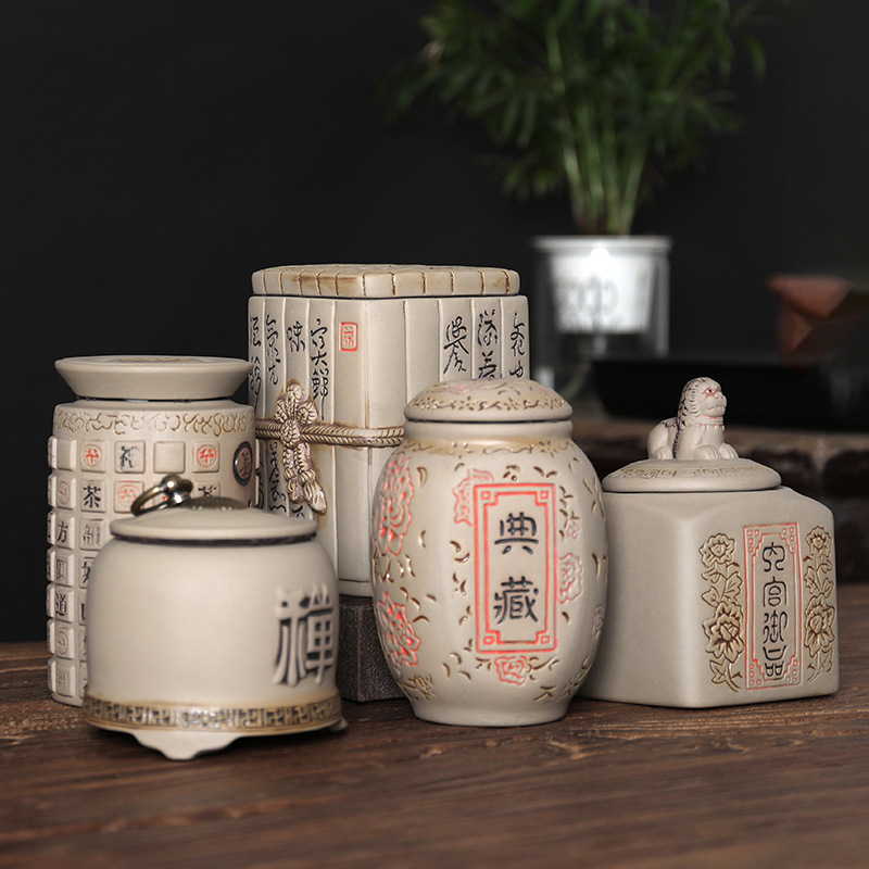 尚官陶中国式模造陶磁器茶葉缶印鑑保存茶缶プーアル茶餅缶黒茶覚醒茶缶カスタマイズ
